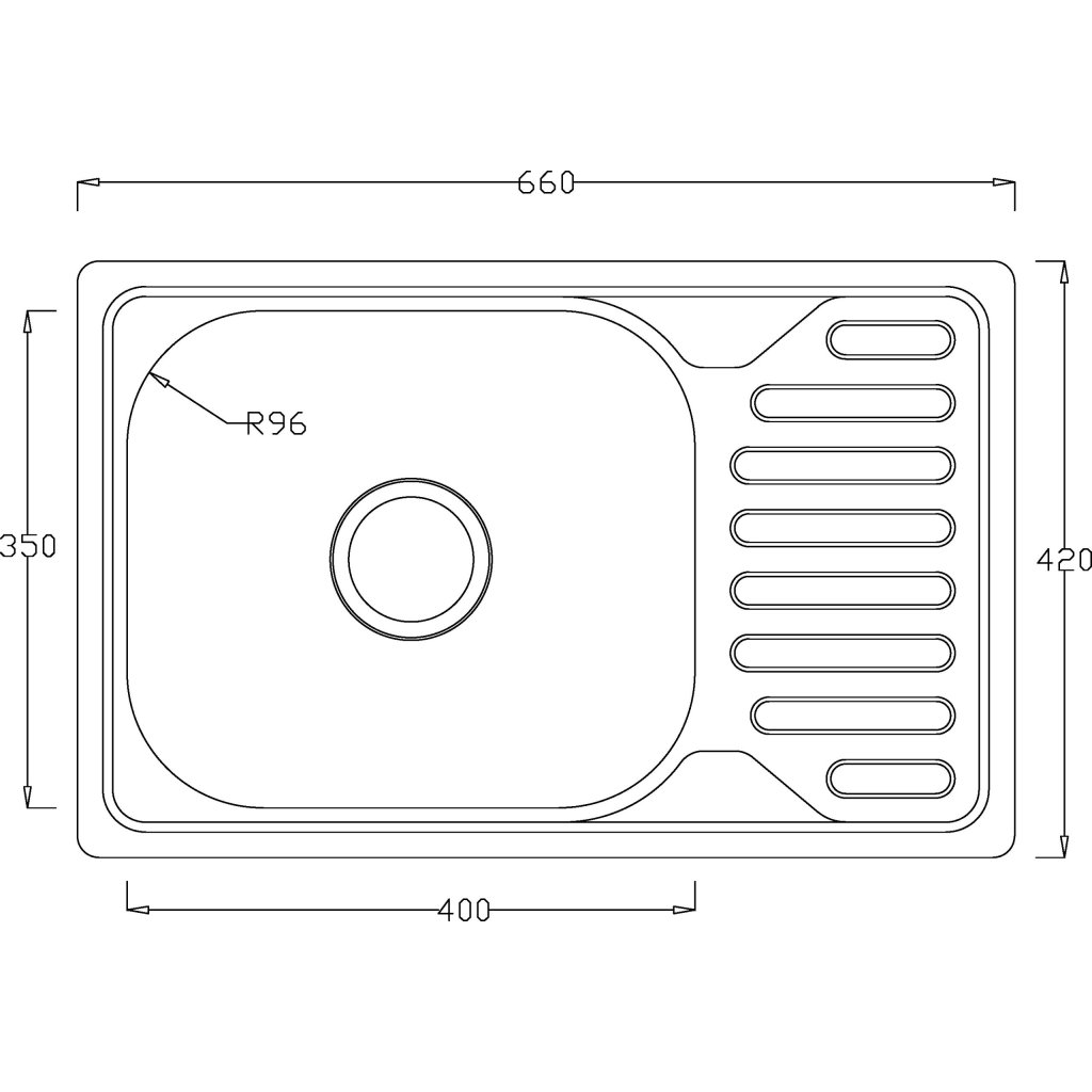 - Tip: chiuvetă de bucătărie din oțel inoxidabil cu 1 cuvă
