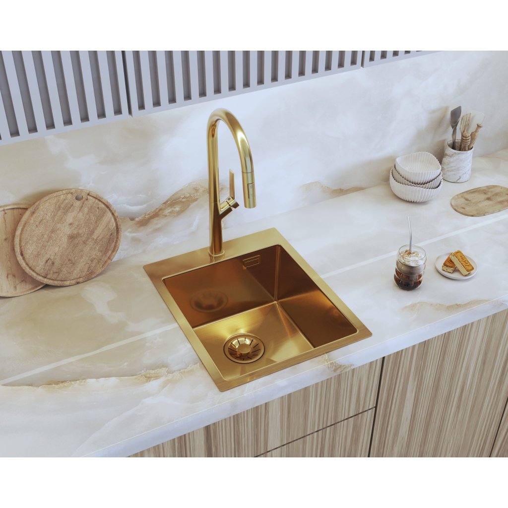 Chiuvetă Gamma, din oțel inoxidabil cu 1 compartiment, 400x500x210 mm, auriu periat, GMA-S4050-GD