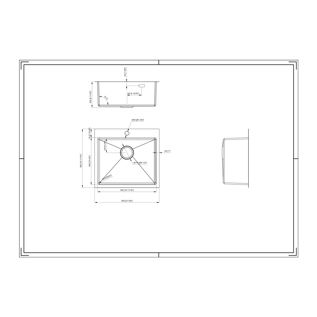 Chiuvetă Gamma, din oțel inoxidabil cu 1 compartiment, 550x500x210 mm, grafit, GMA-S5550-BK