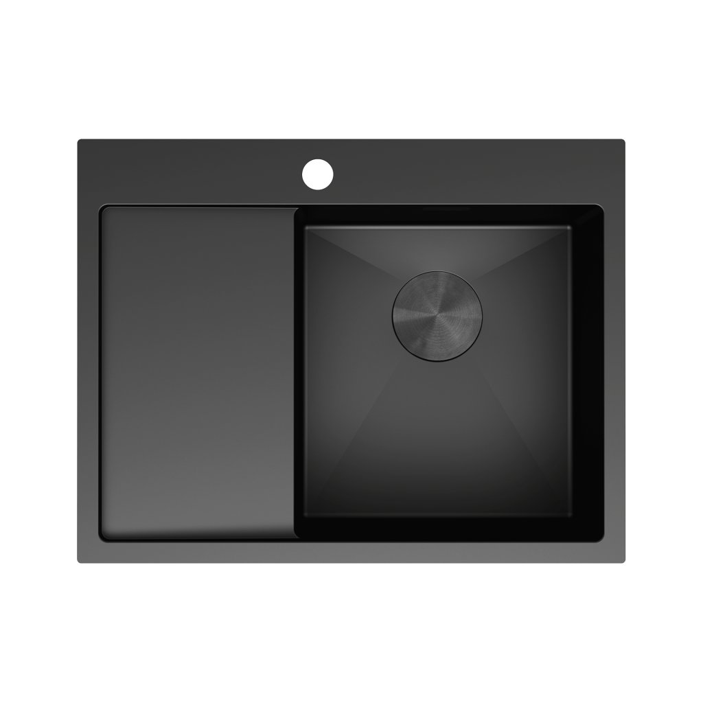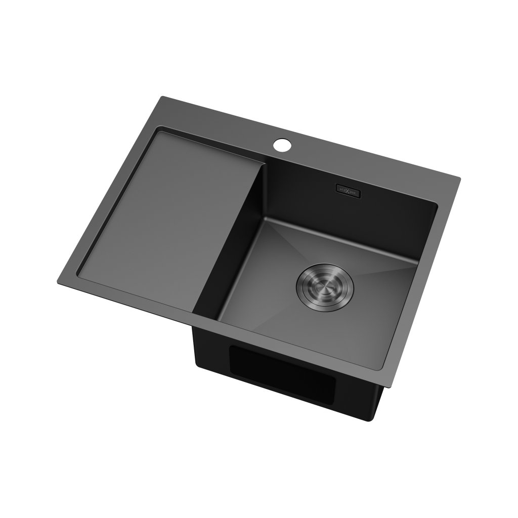 Chiuvetă Mexen Exar, din oțel inoxidabil cu 1 compartiment și scurgător, dreapta, 620 x 480 mm, neagră, 6432621005P-70