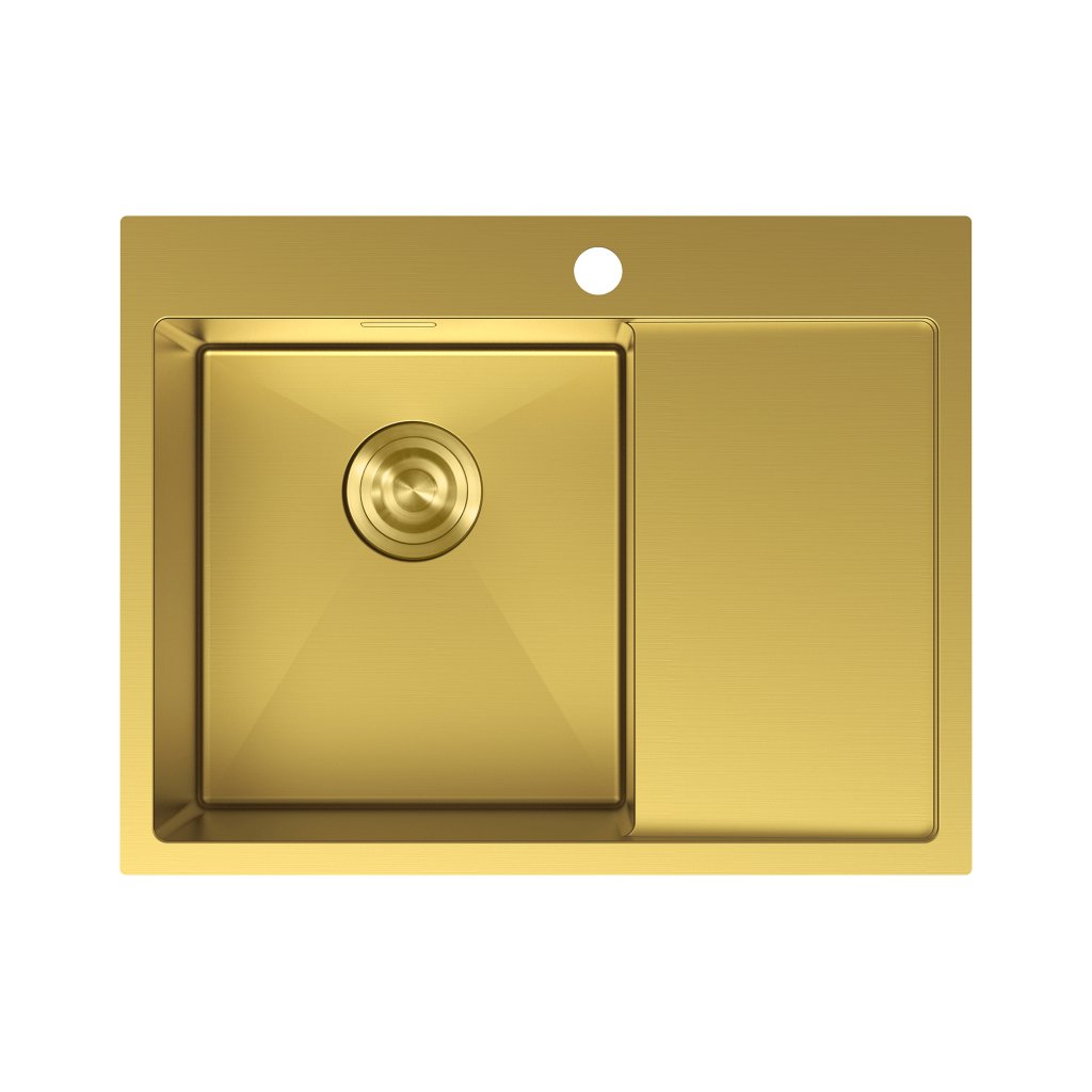 Chiuvetă Mexen Exar, din oțel inoxidabil cu 1 compartiment și scurgător, stânga, 620 x 480 mm, auriu periat, 6431621005L-55