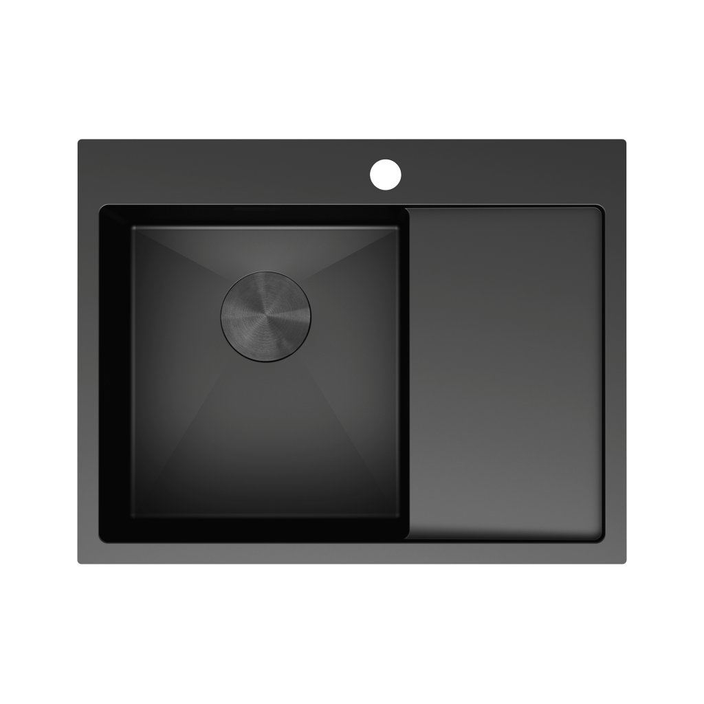Chiuvetă Mexen Exar, din oțel inoxidabil cu 1 cuvă și scurgător, stânga, 620 x 480 mm, neagră, 6431621005L-70