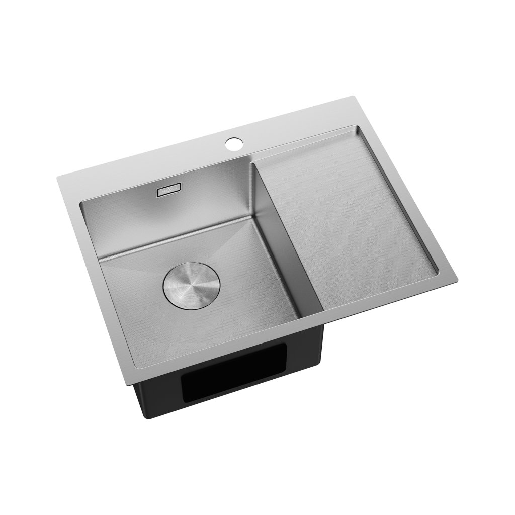 Chiuvetă Mexen Exar, din oțel inoxidabil cu 1 cuvă și scurgător, stânga, 620 x 480 mm, oțel periat, model fagure, 6431621005L-01HC