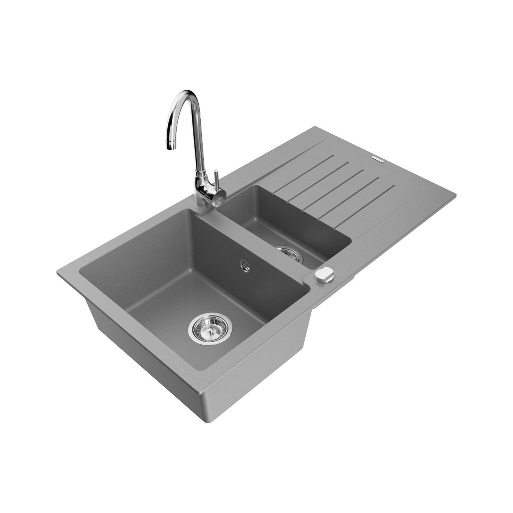 Chiuveta Mexen Matias granit 1.5 camera cu scurgere si robinet de bucatarie Telma, gri, 6502-71-670200-00