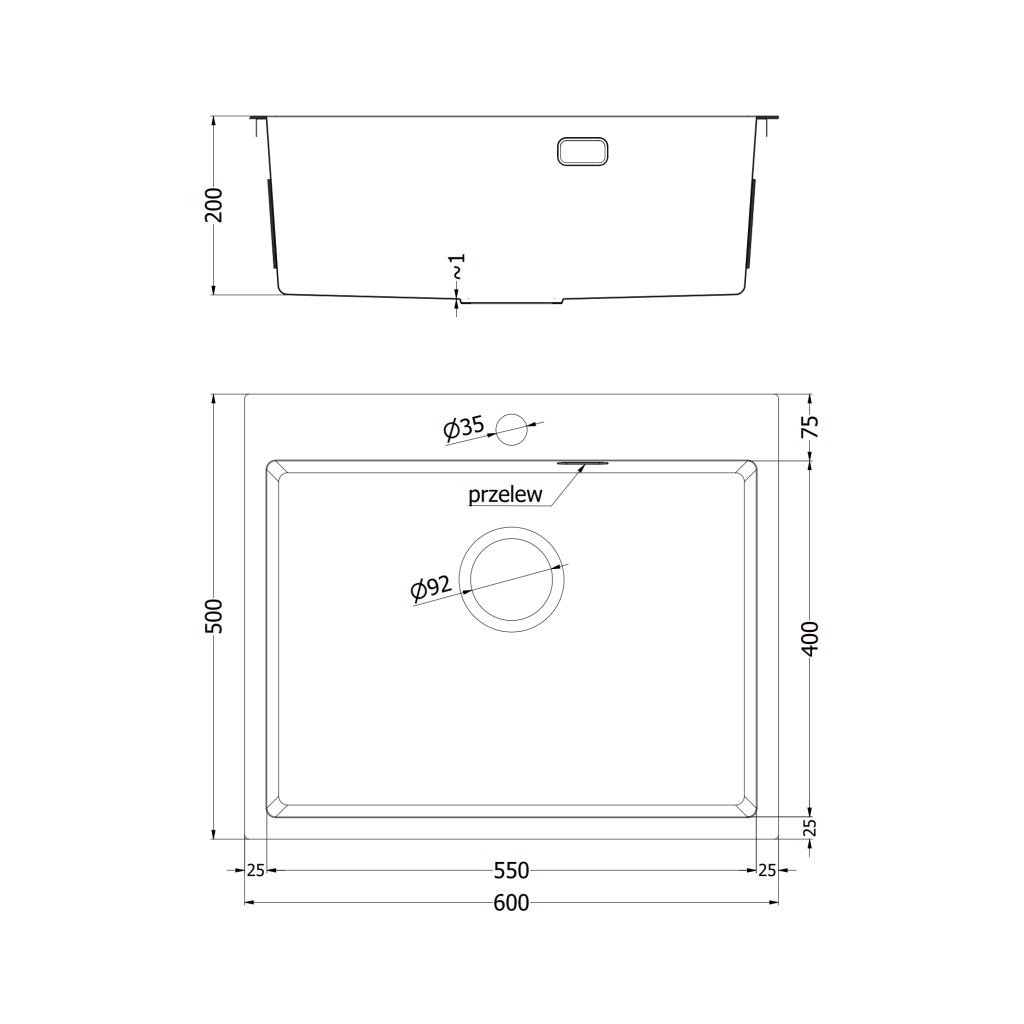 - Dimensiuni: 600 × 500 × 200 mm