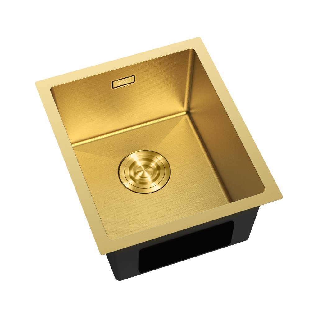 Chiuvetă Mexen Trixo, din oțel inoxidabil cu 1 cuvă, 370 x 440 mm, auriu periat, model fagure, 6412371000-55HC