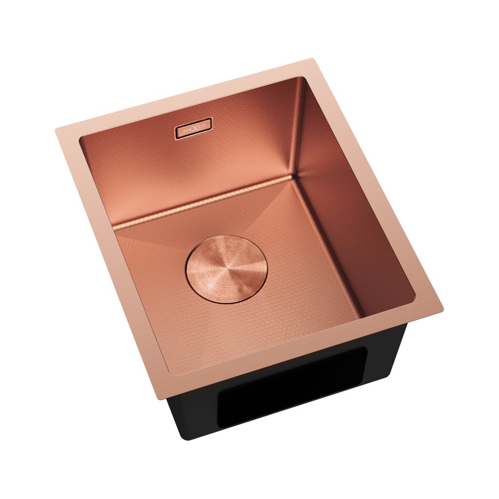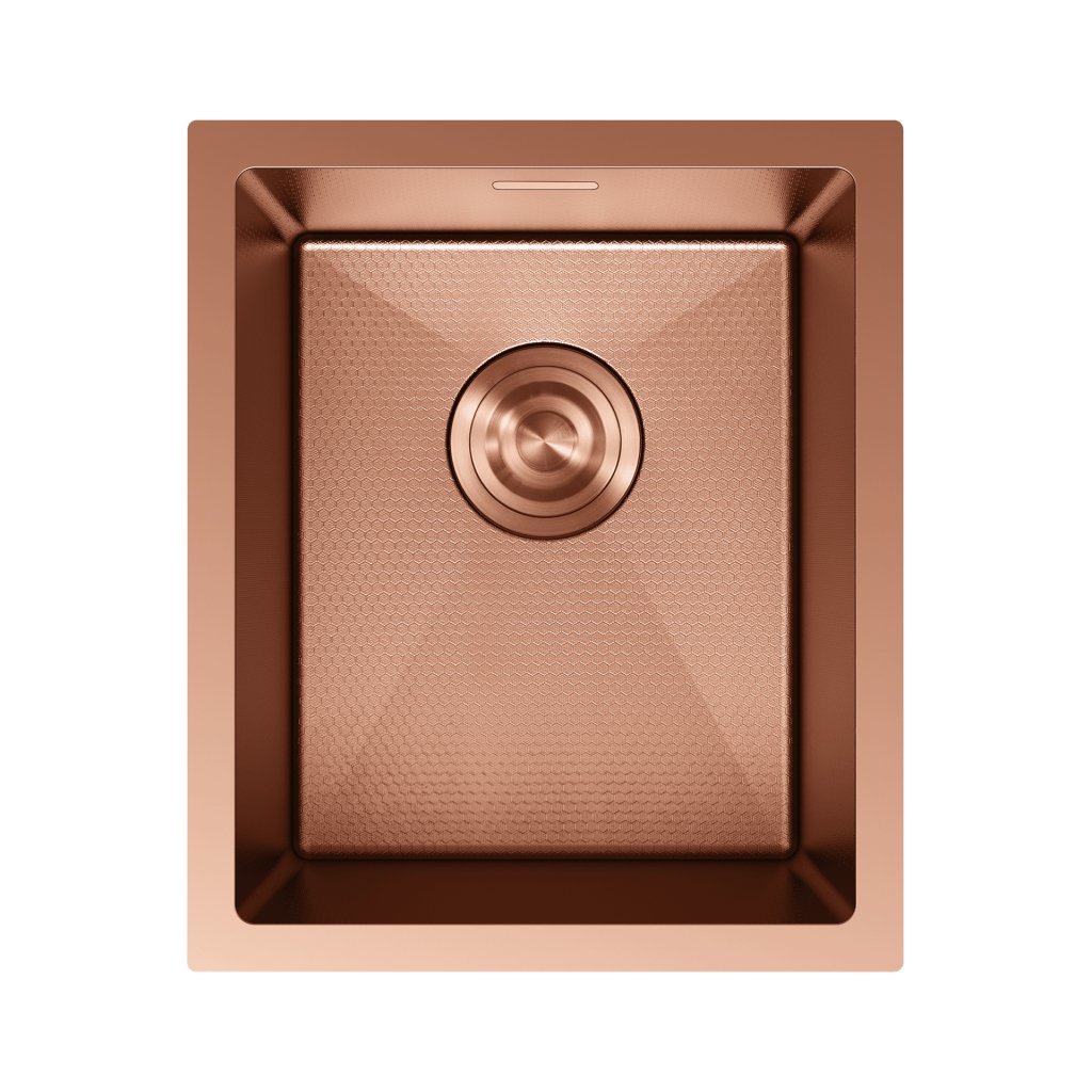 Chiuvetă Mexen Trixo, din oțel inoxidabil cu 1 cuvă, 370 x 440 mm, cupru periat, model fagure, 6412371000-65HC