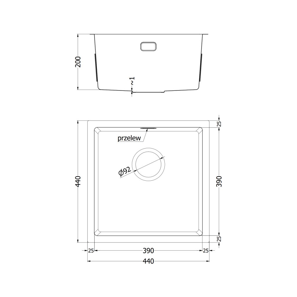 - Dimensiuni: 440 × 440 × 200 mm