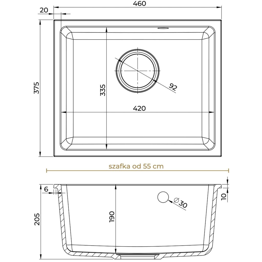 - Dimensiuni chiuveta: 460 x 375 x 205 mm
