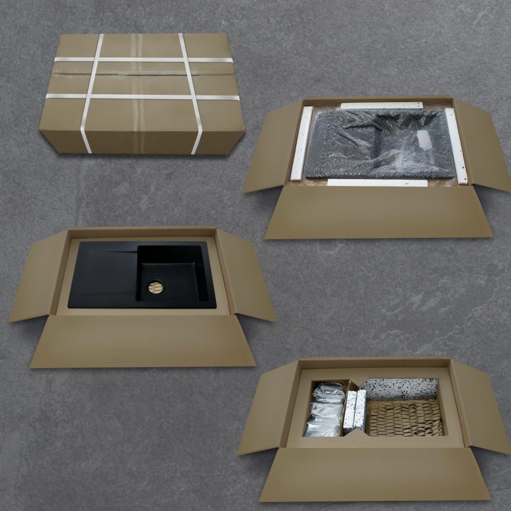 Chiuveta este ambalată într-o cutie de carton armat cu căptușeală care protejează mărfurile în timpul transportului.