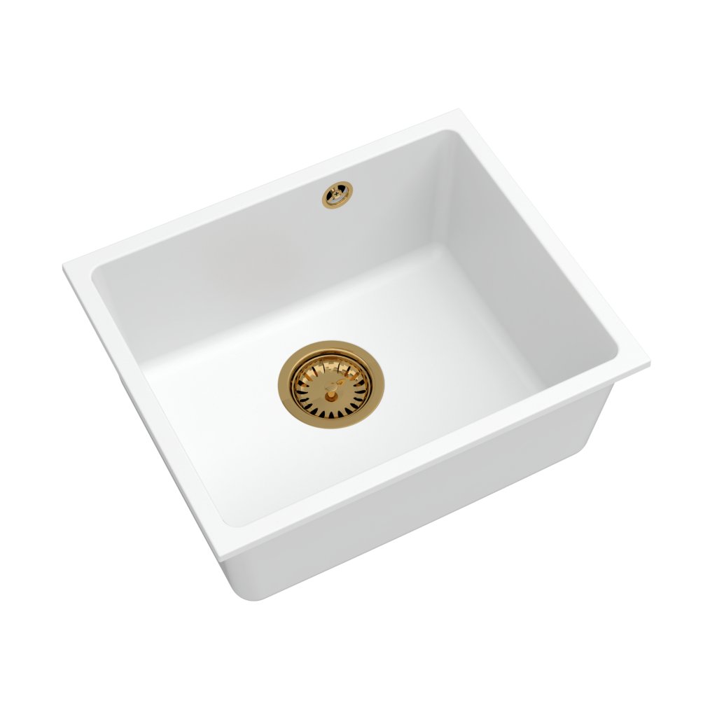 Chiuveta Quality Crypton 55, chiuveta granit bucatarie 460x375x205 mm + sifon auriu, alb, SKQ-CRY.W.1KBO.55.XG