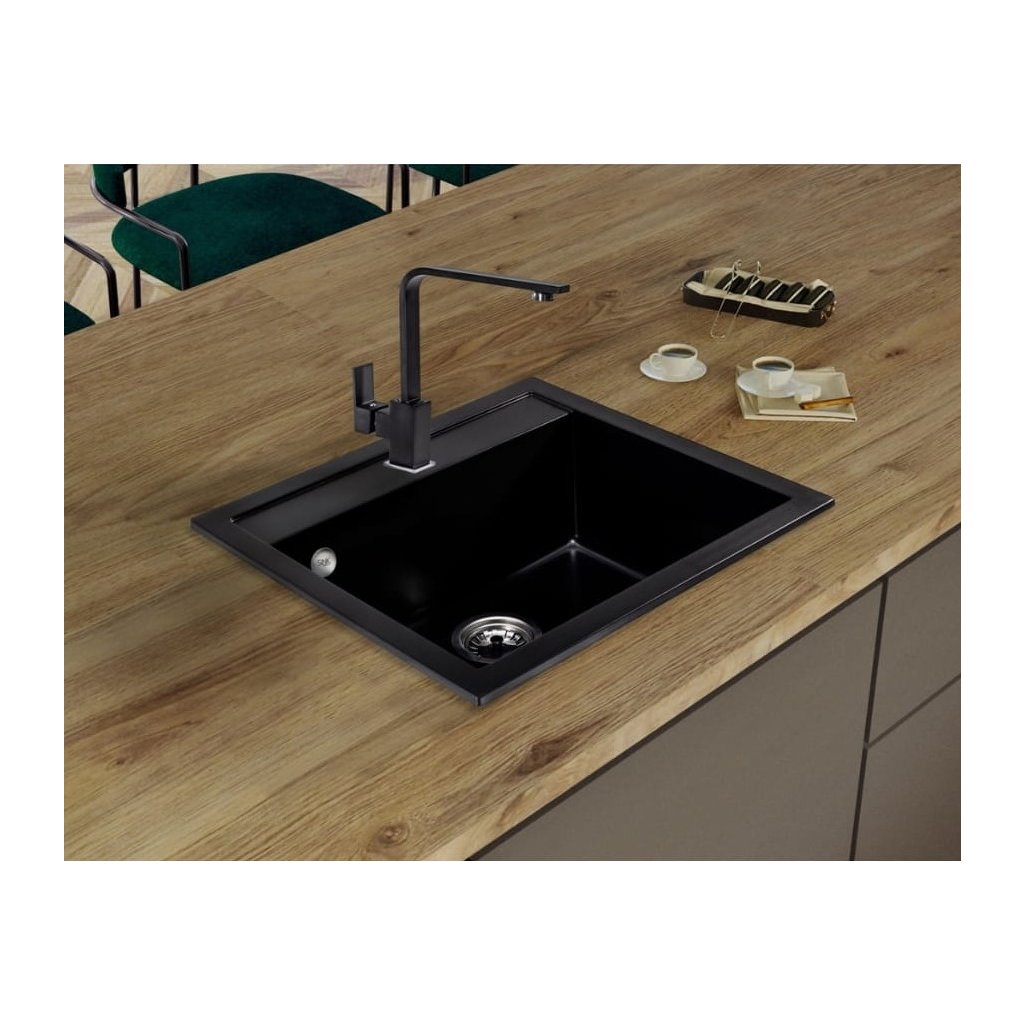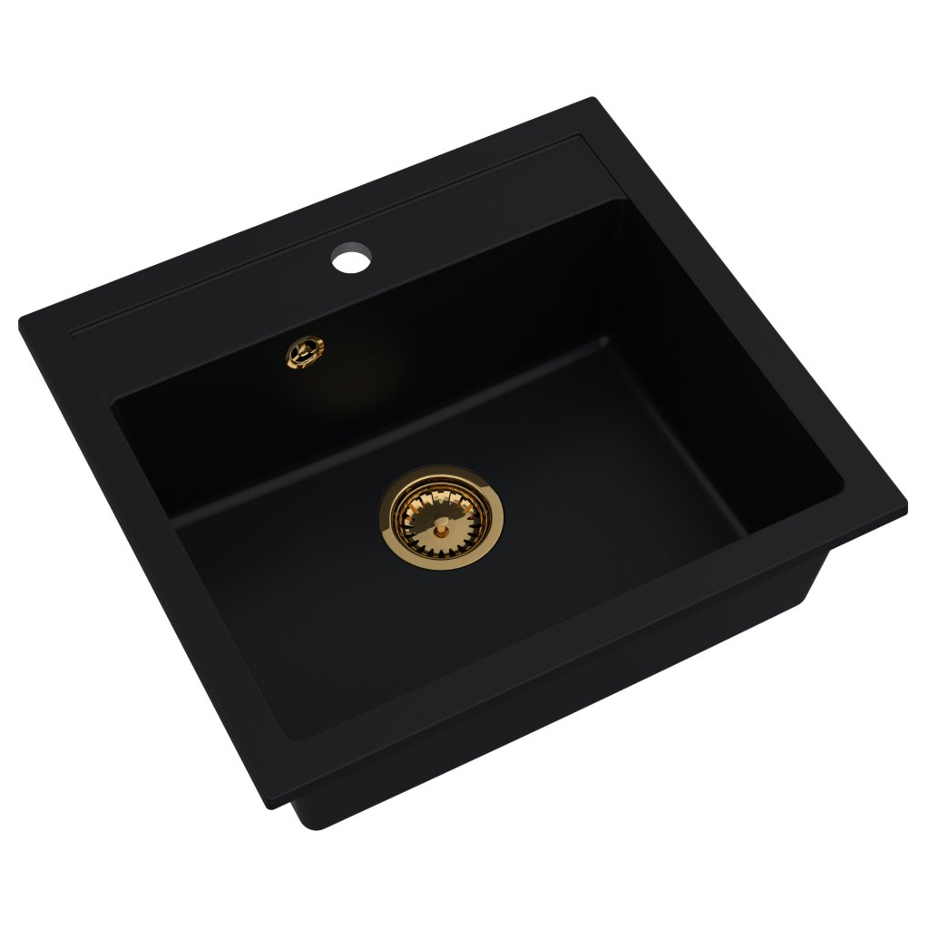 Chiuveta Quality Ferrum, chiuveta granit bucatarie 565x510x205 mm + sifon auriu, negru, SKQ-FER.C.1K60.XG
