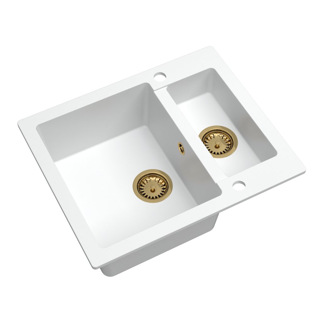 Chiuveta Quality Ferrum, chiuveta granit bucatarie 605x495x210 mm + sifon auriu, alb, SKQ-FER.W.5KBO.XG