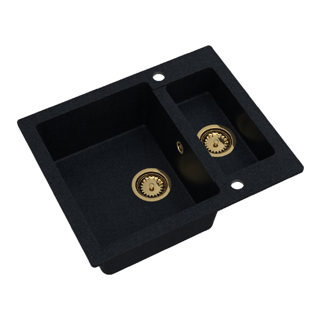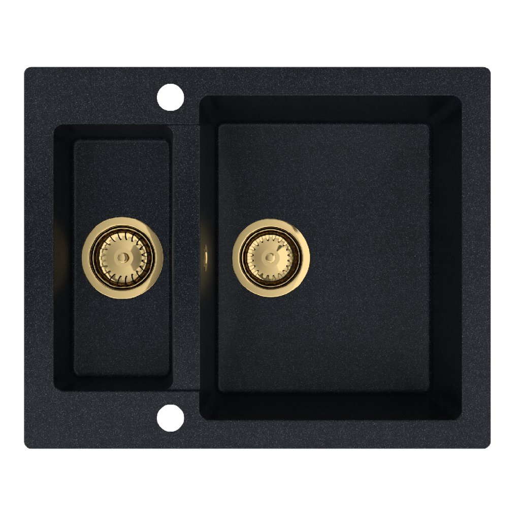 Chiuveta Quality Ferrum, chiuveta granit bucatarie 605x495x210 mm + sifon auriu, pete negre-BROCADE, SKQ-FER.B.5KBO.XG