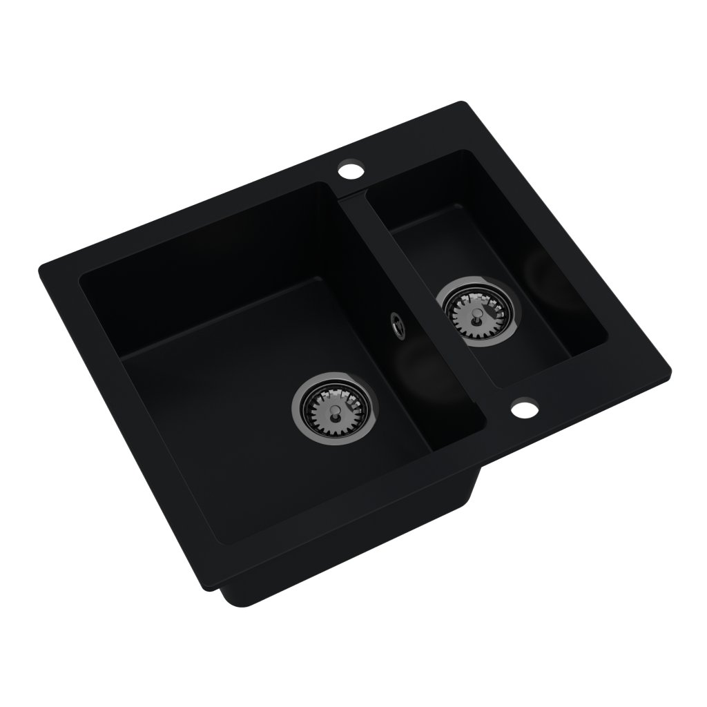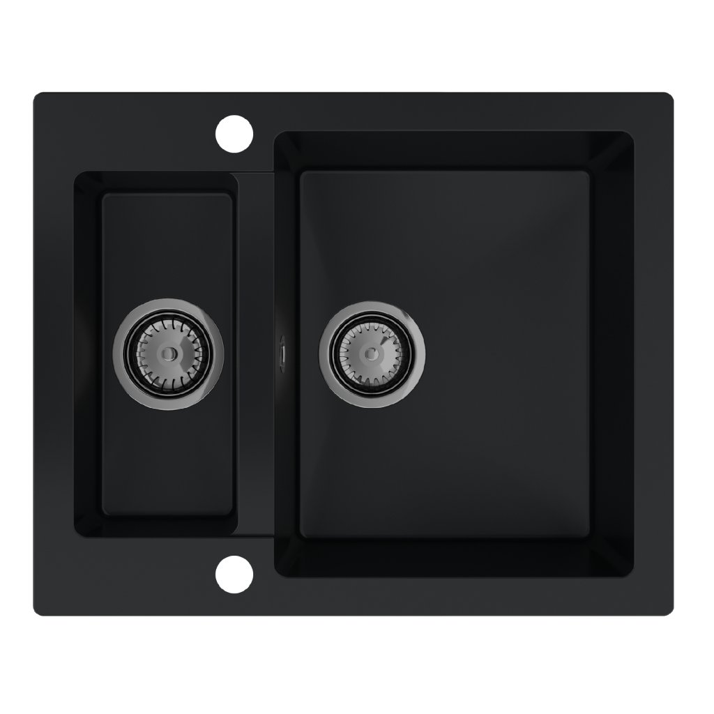 - Chiuvetă din nanogranit cu 2 găuri găurite din fabrică (orificiu pentru robinet și dozator de detergent)