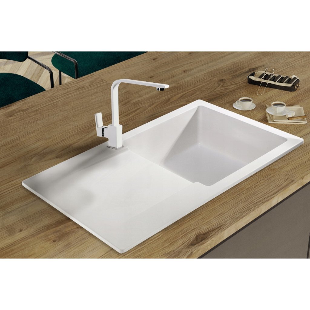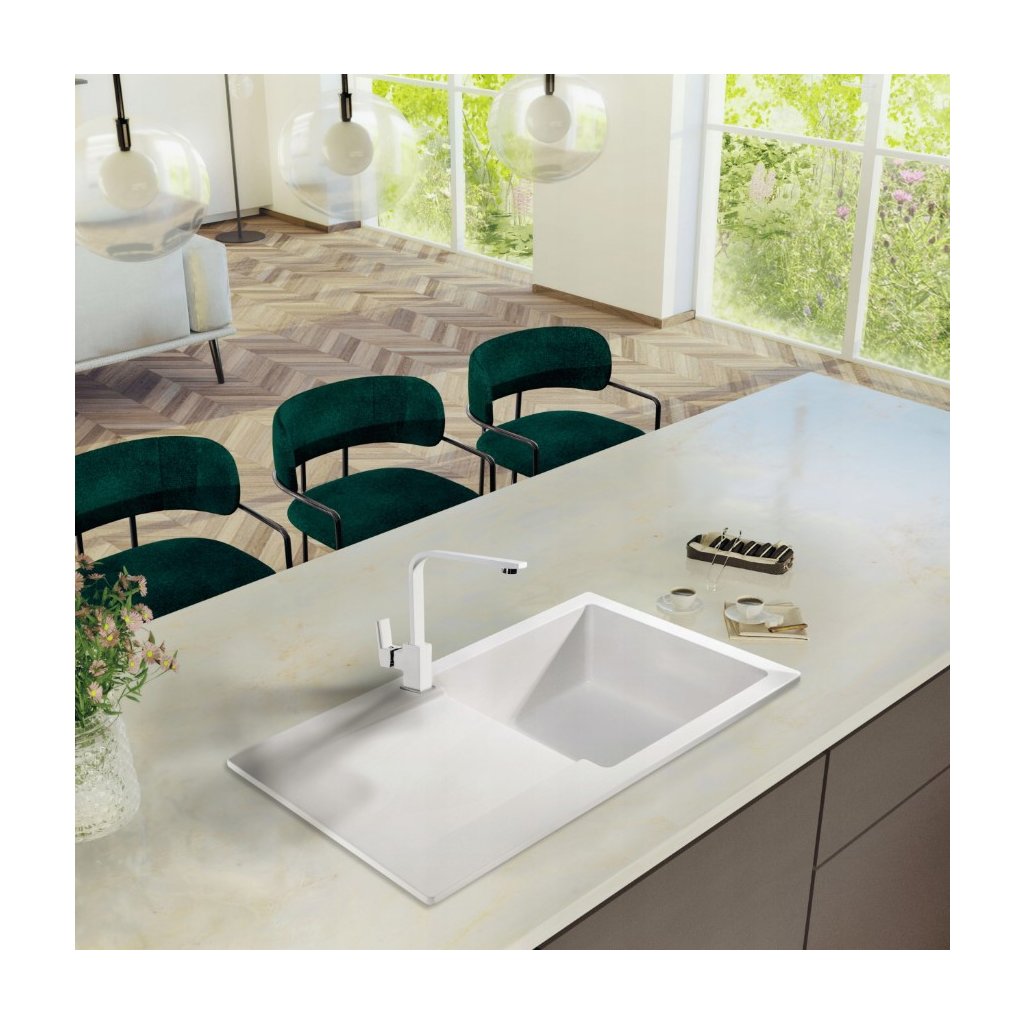 O chiuvetă albă de bucătărie va oferi ușurință și va lumina decorul interiorului dumneavoastră. Aceasta este sugestia perfectă atunci când vă plac accesoriile în stil scandinav, boho sau englezesc. Suprafața fin pestriță este un design elegant chiar și pentru bucătăriile moderne.