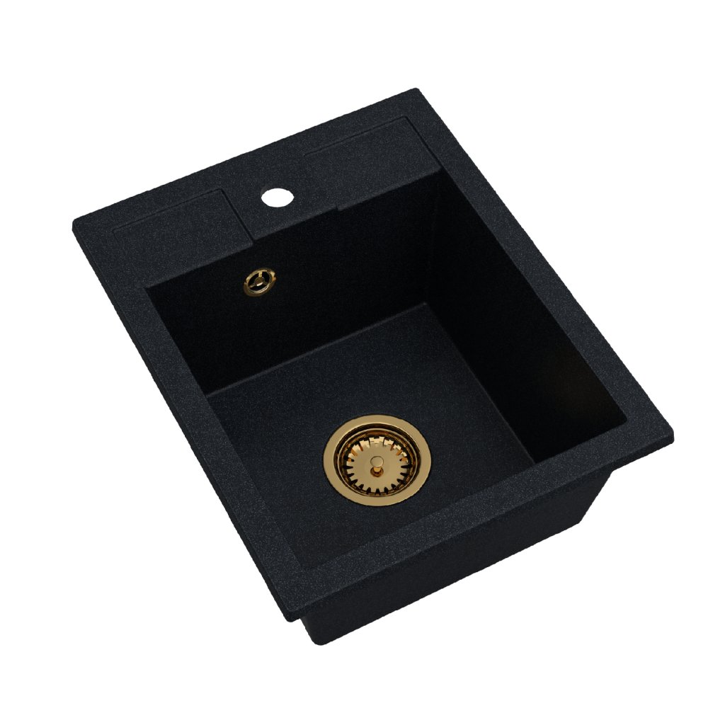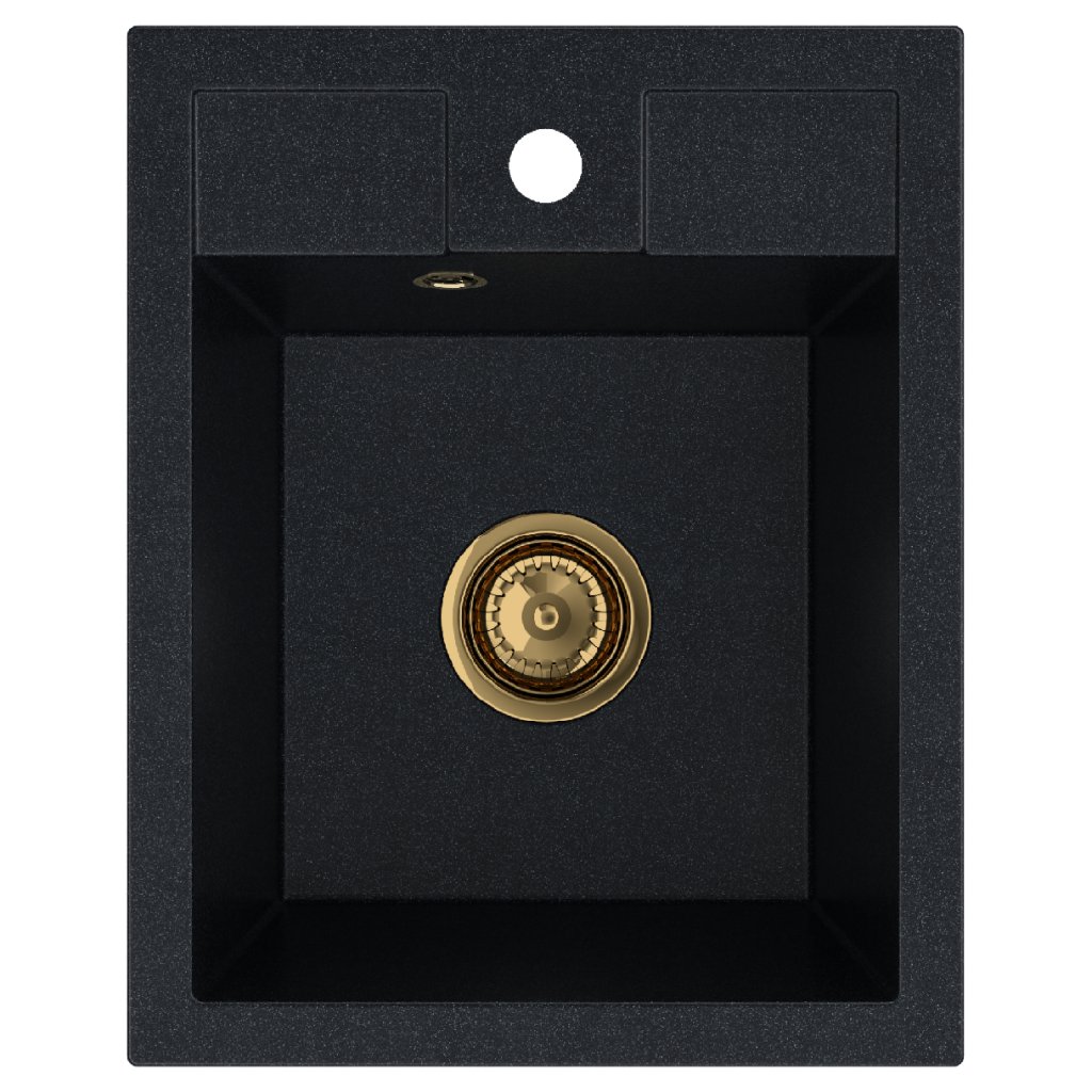 Chiuveta Quality Ferrum 40, chiuveta granit bucatarie 400x500x195 mm + sifon auriu, pete negre-Brocart, SKQ-FER.B.1K40.XG