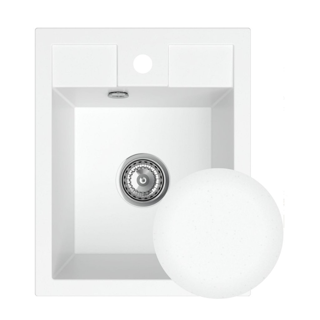 Chiuveta Quality Ferrum 40, chiuveta granit bucatarie 400x500x195 mm + sifon crom, alb, SKQ-FER.W.1K40.X