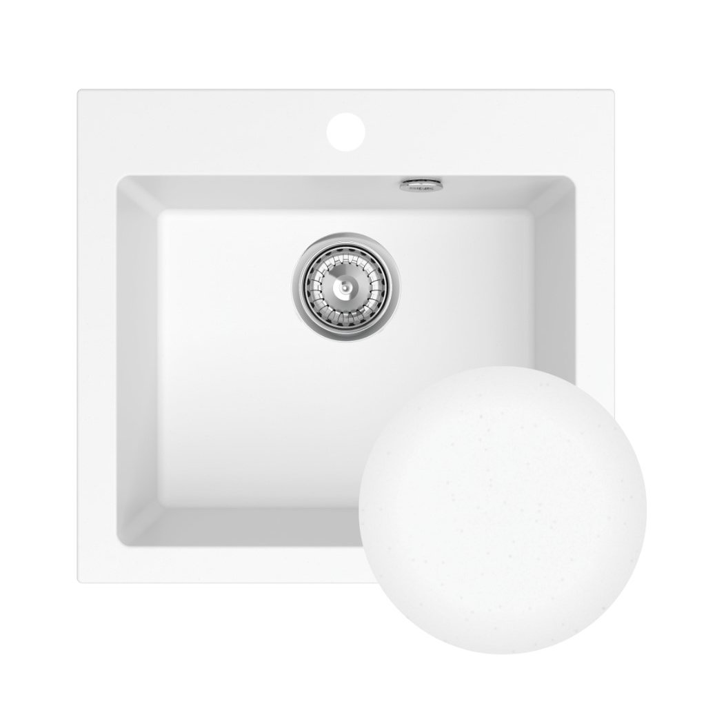 Chiuveta Quality Ferrum 50, chiuveta granit bucatarie 490x450x195 mm + sifon crom, alb, SKQ-FER.W.1K50.X