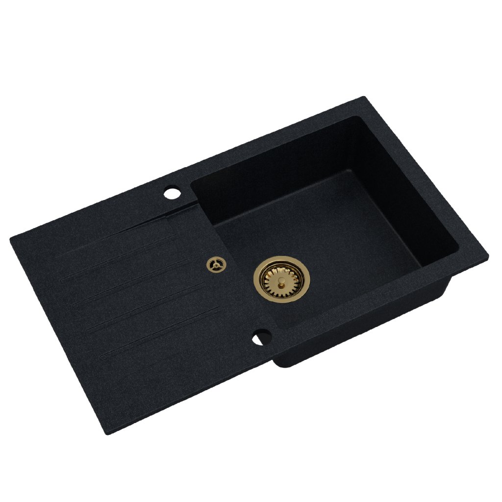 Chiuveta Quality Natalie, chiuveta granit bucatarie 770x450x170 mm + sifon auriu, pete negre-BROCADE, SKQ-NAT.B.1KDO.XG