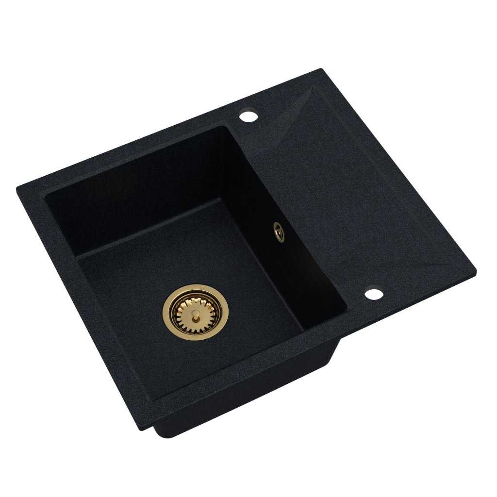 Chiuveta Quality Obsidian, chiuveta granit bucatarie 590x500x210 mm + sifon auriu, pete negre-Brocart, SKQ-OBS.B.1KKO.XG