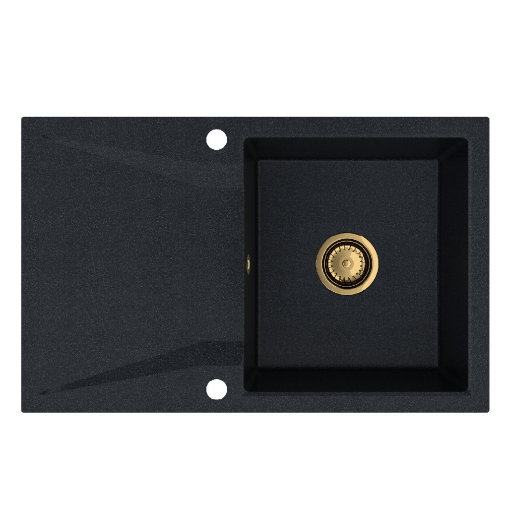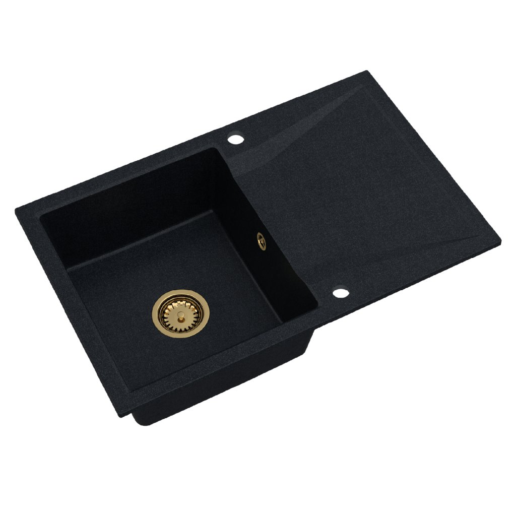 Chiuveta Quality Obsidian, chiuveta granit bucatarie 790x500x210 mm + sifon auriu, pete negre-Brocart, SKQ-OBS.B.1KDO.XG