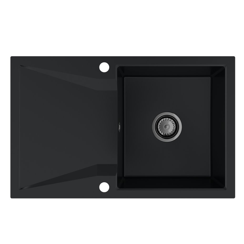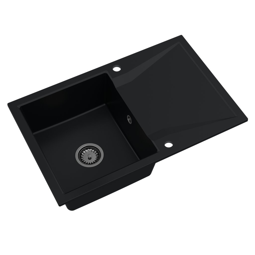 - Chiuvetă din nanogranit cu 2 găuri găurite din fabrică (orificiu pentru robinet și dozator de detergent)