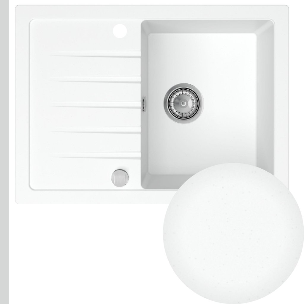 Chiuvetă Quality Titanite, chiuvetă bucătărie granit 680x495x215 mm + sifon crom, alb, SKQ-TIT.W.1KKO.X