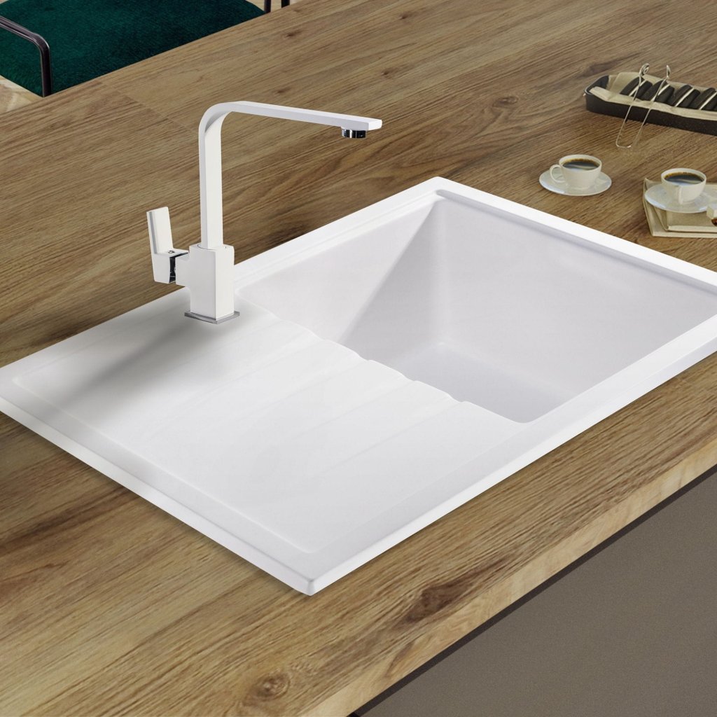 ALBUL - o nuanta calda, usor pestrita - va lumina decorul interiorului dumneavoastra. Ideal pentru bucatariile scandinave, boho sau japoneze. Suprafața ușor pestriță face mai ușoară menținerea curată a chiuvetei de bucătărie.