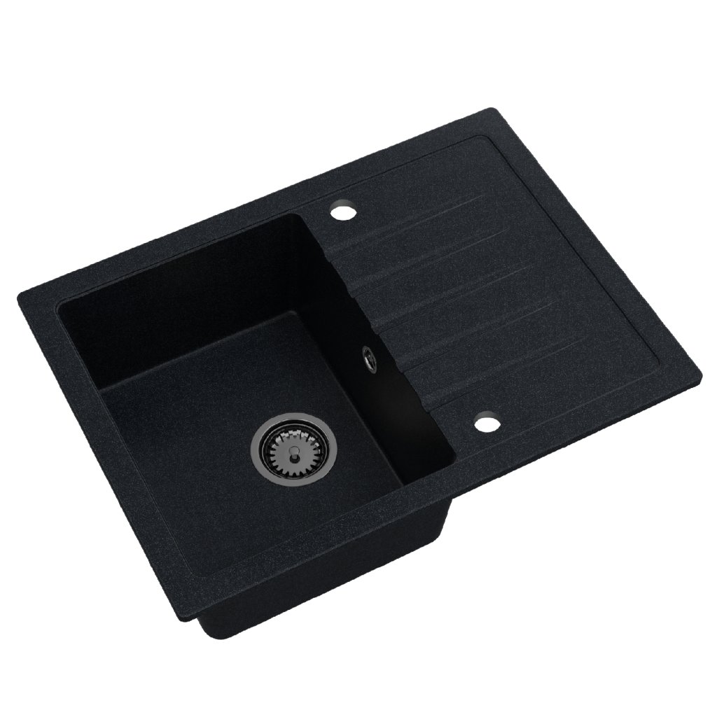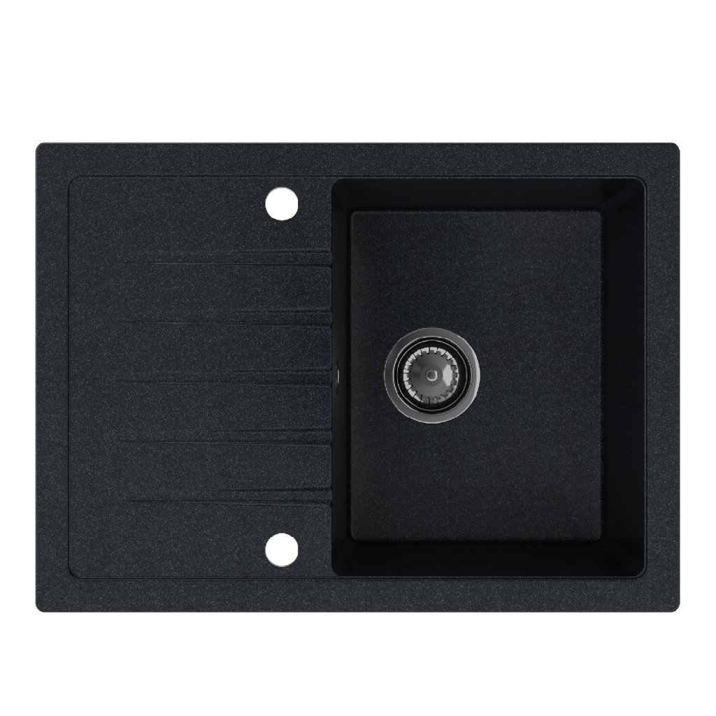 - Chiuvetă din nanogranit, 2 găuri forate din fabrică (găuri pentru robinet și dozator de detergent)