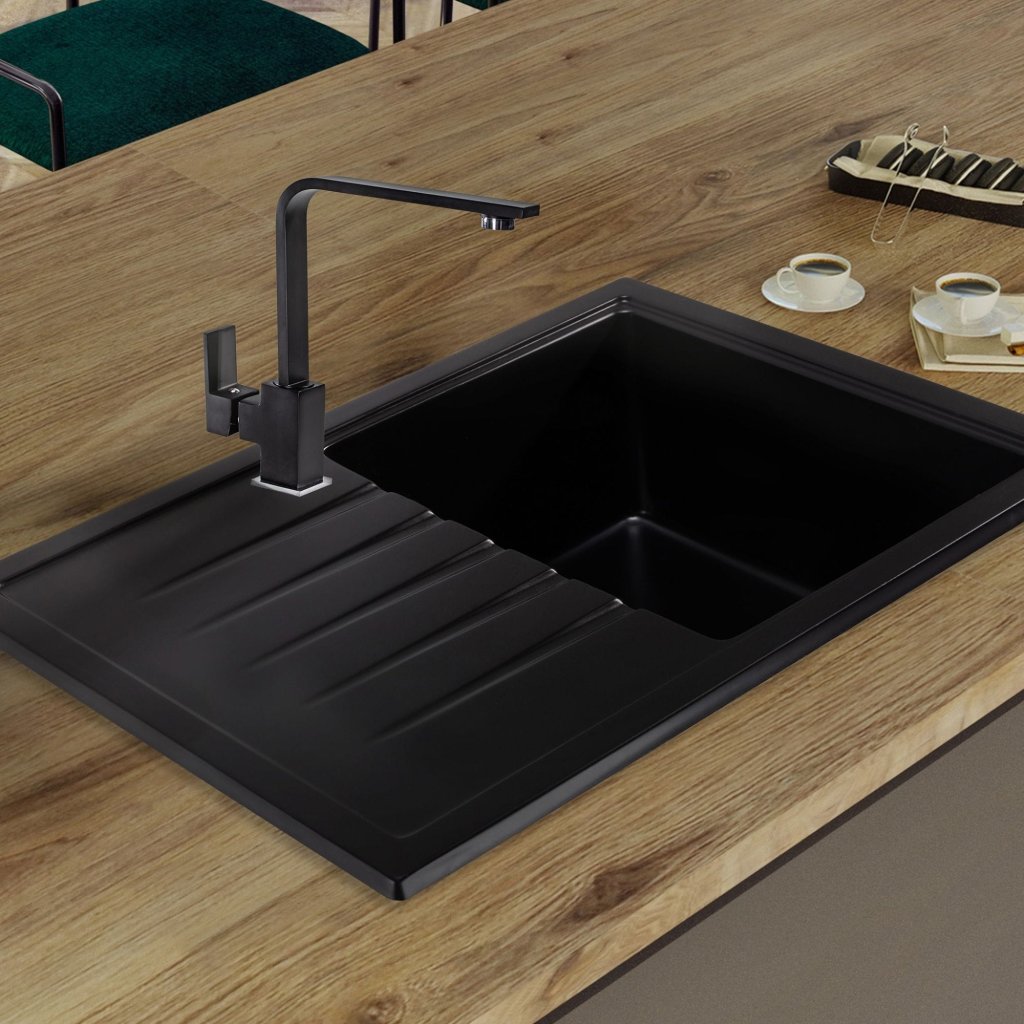 Culoarea neagră a chiuvetei de bucătărie va oferi o eleganță atemporală pentru decorarea bucătăriei dvs. și va completa stilul industrial, mansardă și modern.