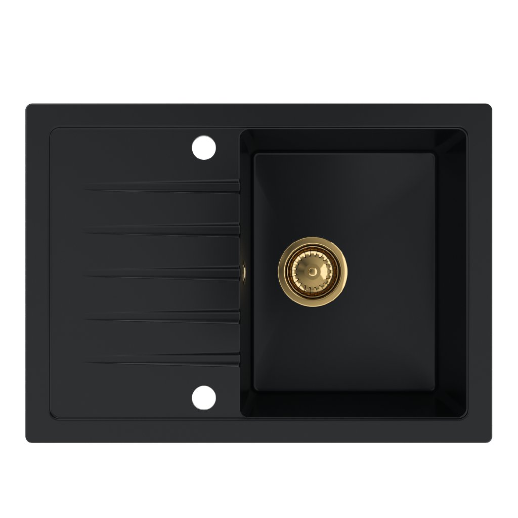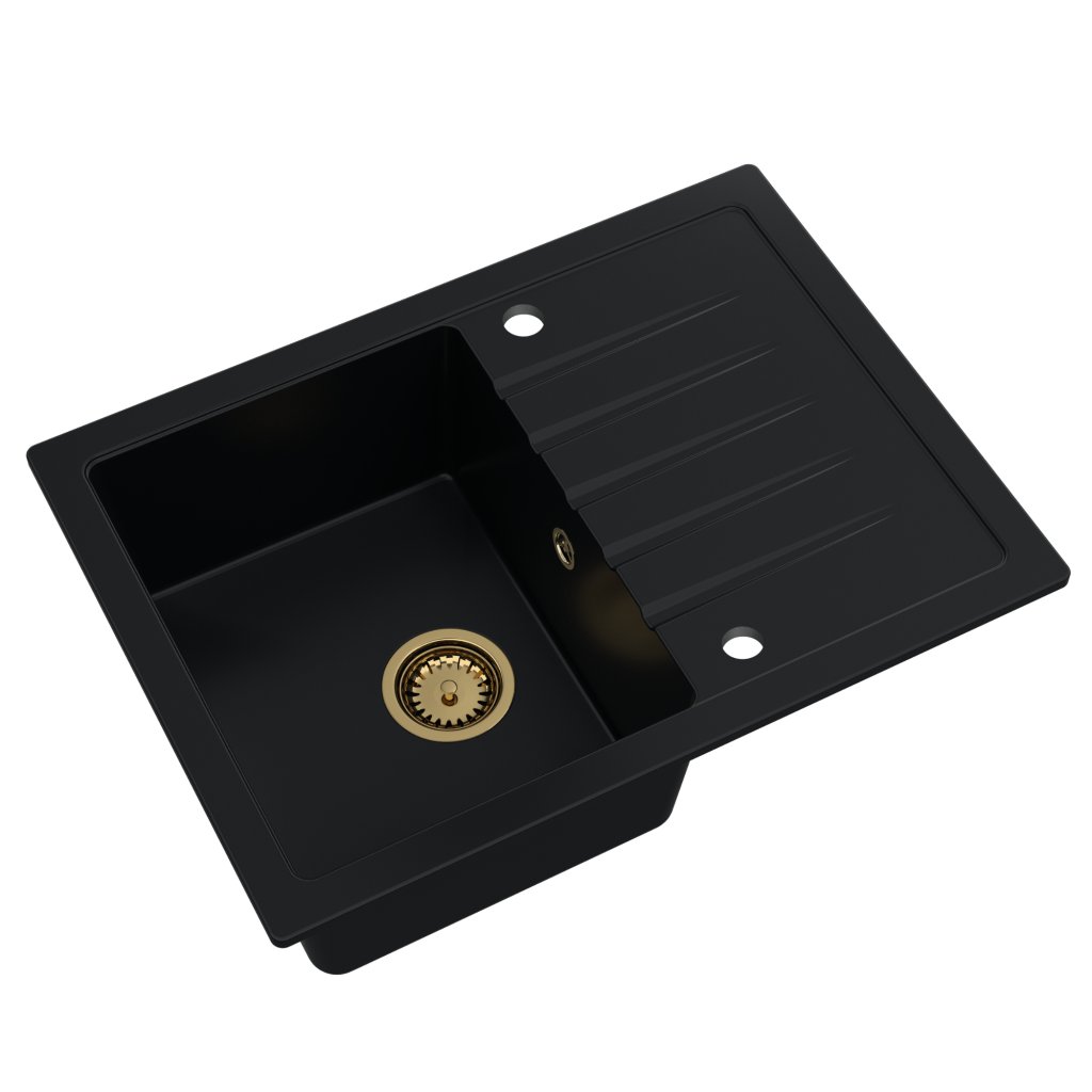 Chiuvetă Quality Titanite, chiuvetă bucătărie granit 680x495x215 mm + sifon auriu, negru, SKQ-TIT.C.1KKO.XG