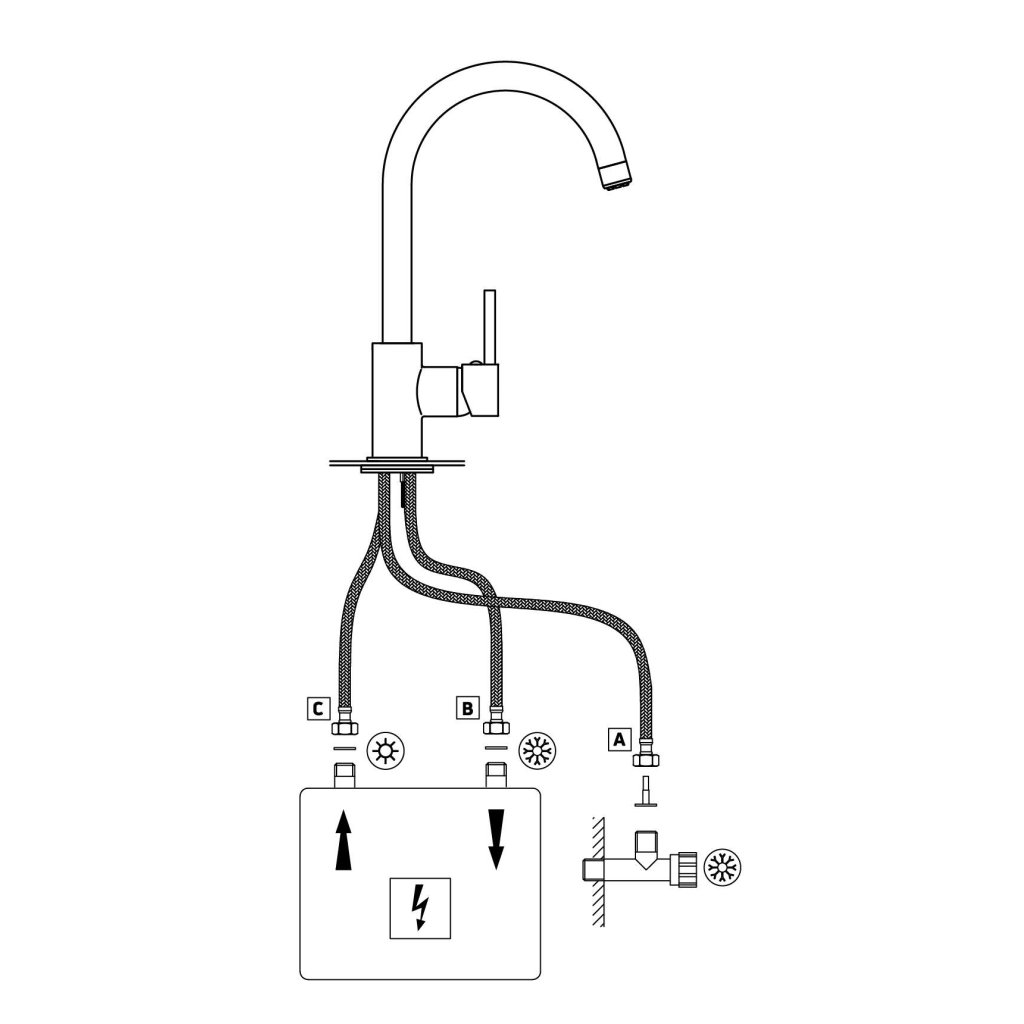Bateria de joasă presiune cu priză mobilă în formă de U este destinată locurilor în care nu există acces la apa caldă a sistemului. Este ideal pentru case de vara sau bucatarii de gradina. Robinetul cu trei căi trebuie conectat la un încălzitor de joasă presiune instalat, de exemplu, sub o masă sau într-un dulap. Duza mobilă este potrivită pentru chiuvete cu două camere. Bateria este echipata cu un aerator care, prin aerarea debitului de apa, ii reduce semnificativ consumul.
