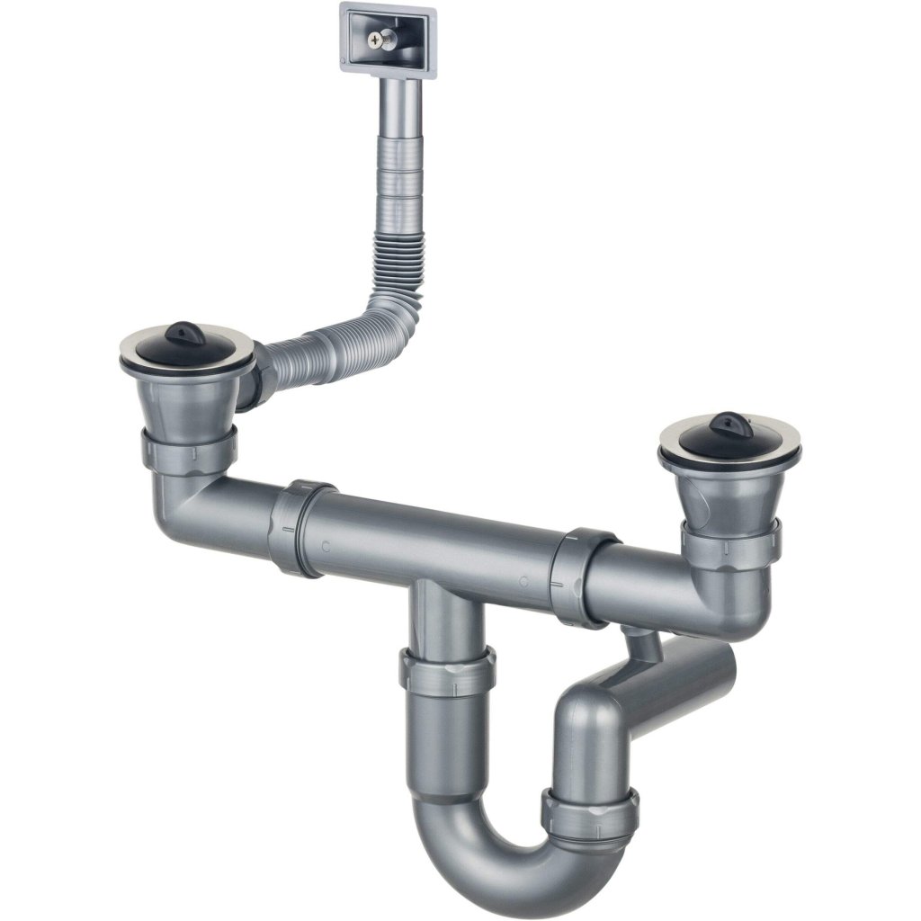 - Tip: sifon pentru chiuveta din otel cu 2 camere