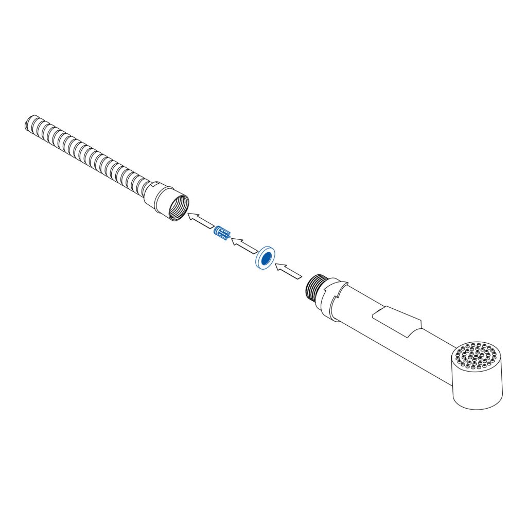 - Tip: supapă de reținere pentru furtunuri de duș cu etanșare și sită