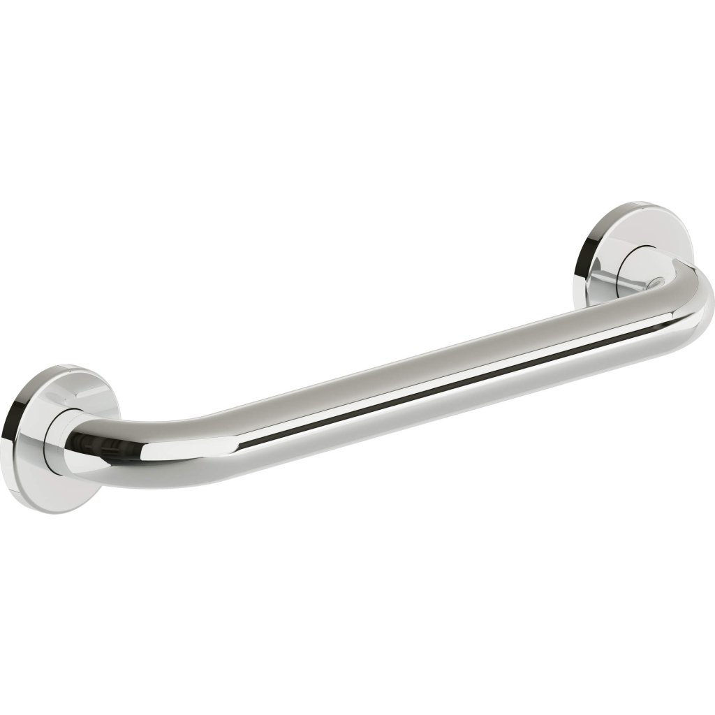 Suport de perete din otel inoxidabil cu lungimea de 30 cm. Rozete cu diametrul de 71 mm din plastic cromat. Inclusiv un kit de montare pentru o suprafață tare (pereți din cărămidă solidă/beton). Capacitate maximă de încărcare 150 kg. Produsul este un dispozitiv medical.