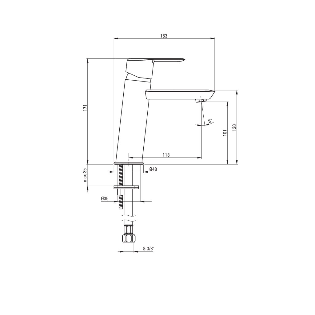Corpul înclinat al bateriei înseamnă că apa care picură pe gura de scurgere se scurge imediat, fără a lăsa sedimente inestetice. Datorită acestui lucru, este ușor de păstrat curat și impresionează constant prin suprafața sa cromată strălucitoare.