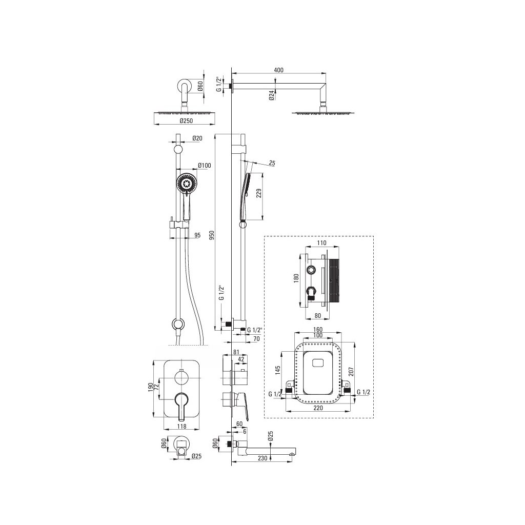 Setul ascuns Arnika constă dintr-o bară cu un cap de duș și un cap de ploaie, o gura rabatabilă și un baterie cu comutator de duș. Suportul pentru căști poate fi mutat în orice poziție și adaptat preferințelor individuale ale utilizatorului. Capul de duș și capul de ploaie sunt echipate cu sistemul Anti-calc, care facilitează curățarea lor de depuneri și calcar. Duza poate fi pliată paralel cu peretele în timpul îmbăierii, ceea ce vă oferă mult spațiu, ceea ce este important atunci când spălați copiii mici. Setul este realizat din crom lucios, care reflecta frumos lumina si adauga stralucire spatiului.