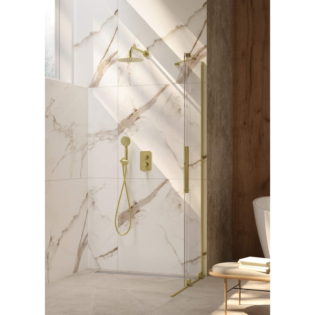 Setul de duș include un cap de duș cu furtun și mâner, un cap de duș ultra-subțire și un robinet, creând o soluție completă pentru orice baie modernă. Capul de duș oferă trei funcții de jet - ploaie, mixt și hidromasaj. Datorită mânerului mobil, îl poți poziționa precis și îl poți adapta nevoilor tale, ceea ce mărește confortul de utilizare. Capul de pulverizare realizat din oțel inoxidabil de înaltă calitate garantează durabilitate pe termen lung și rezistență la coroziune. Atât capul, cât și receptorul sunt echipate cu sistemul Anti-calc, care permite îndepărtarea simplă și eficientă a depunerilor de calcar, ceea ce face mai ușor de păstrat curățarea. Cutia încasabilă este echipată cu un comutator de curent convenabil între capul de duș și dușul cu efect de ploaie. Alegand setul de dus ascuns Arnika, investiti intr-un produs care imbina functionalitatea, designul modern si confortul. Instalarea ascunsă asigură un aspect minim și facilitează menținerea curată a băii. Finisajul auriu periat aduce un element de extravaganță și unicitate încăperii.