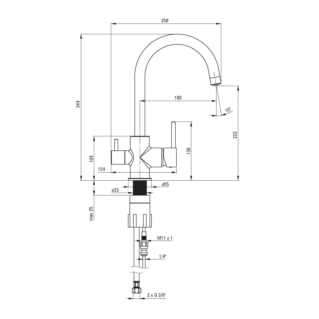 - Tip: baterie chiuveta cu pipa in forma de "U" si racord pentru apa filtrata