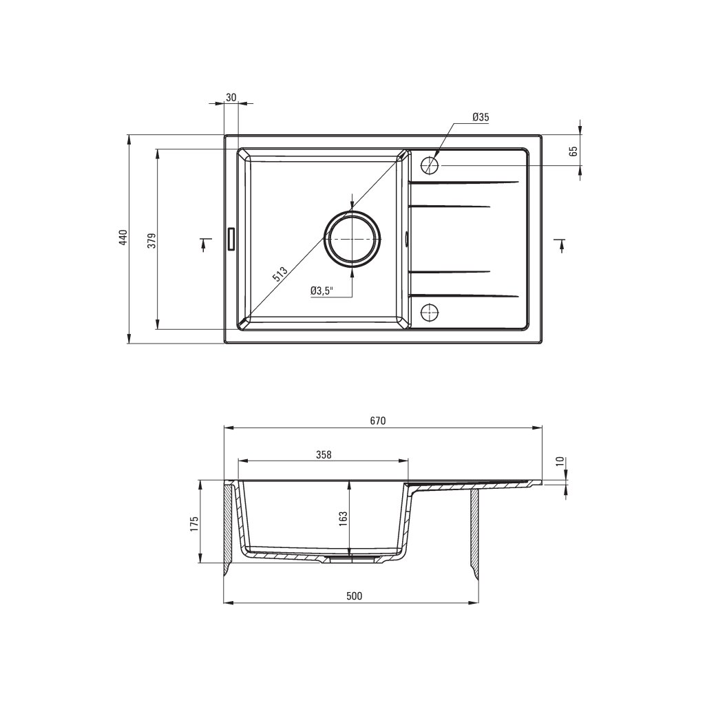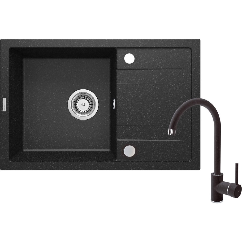 Deante Corio, chiuveta blat granit 670x440x175 mm + baterie chiuveta cu brat in "U" grafit + 3,5" + sifon de economisire a spatiului, 1 camera, grafit, ZRCA2113