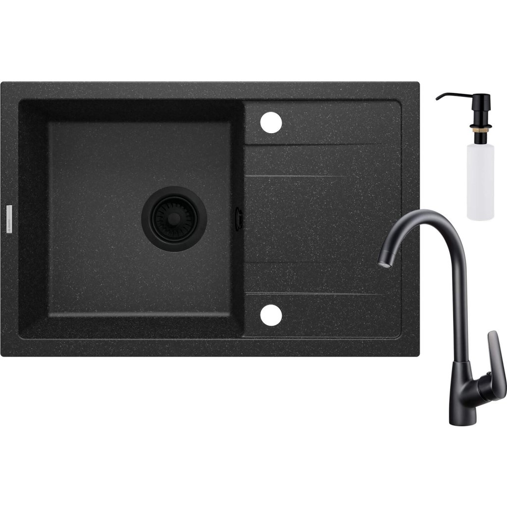 Deante Corrio, chiuveta granit 1 camera 670x440x175 mm si robinet chiuveta cu dozator de detergent, grafit, DEA-ZRCC2113