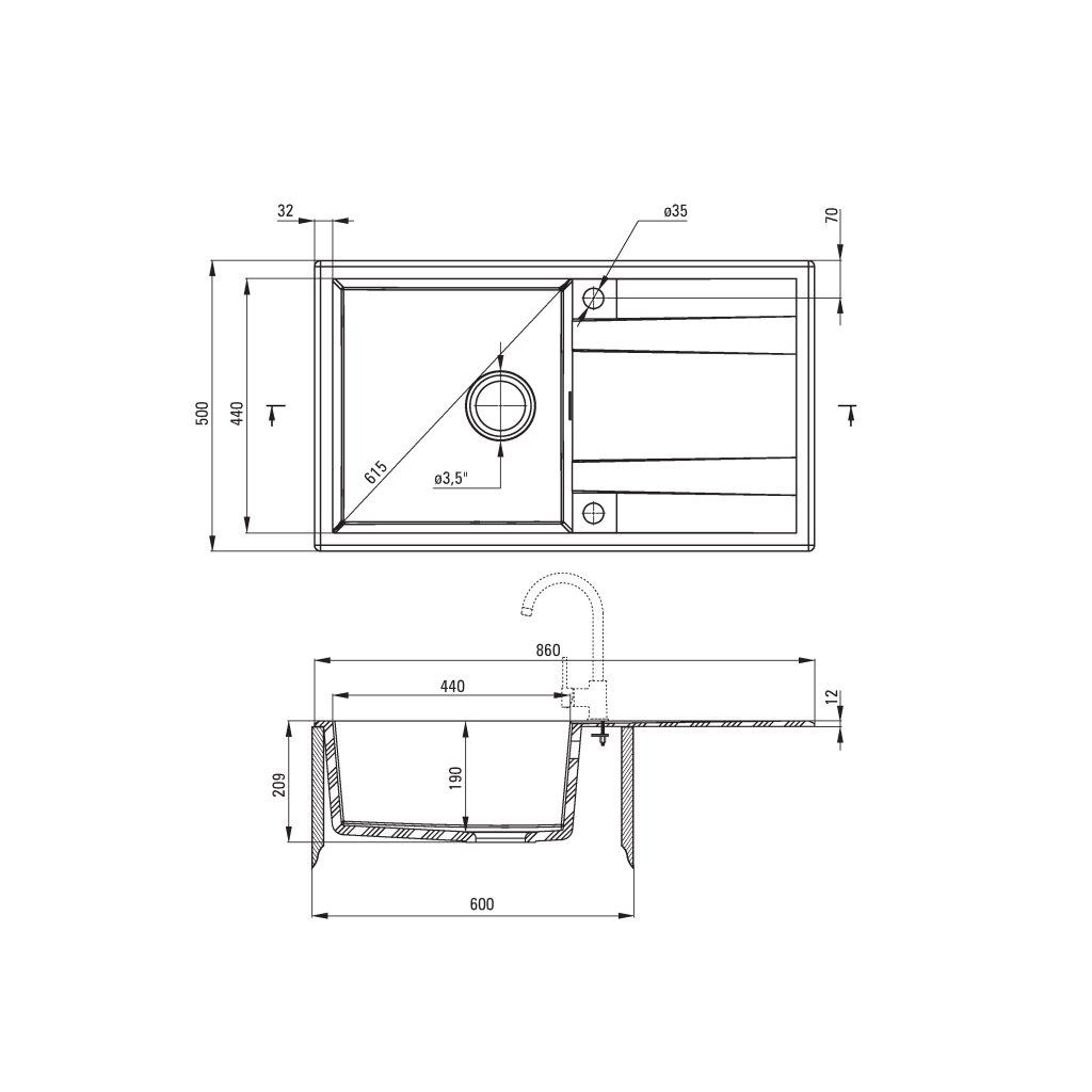 - Tip: chiuveta blat granit + sifon cu economie de spatiu