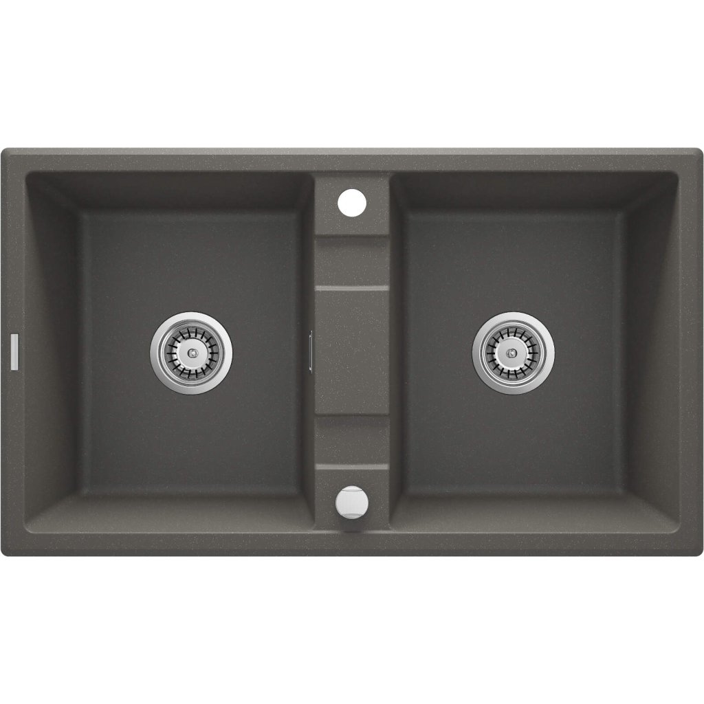 Deante Eridan, chiuveta blat granit 860x500x220 mm B/O, 3,5" + sifon cu economie de spațiu, 2 camere, antracit metalic, ZQE_T203