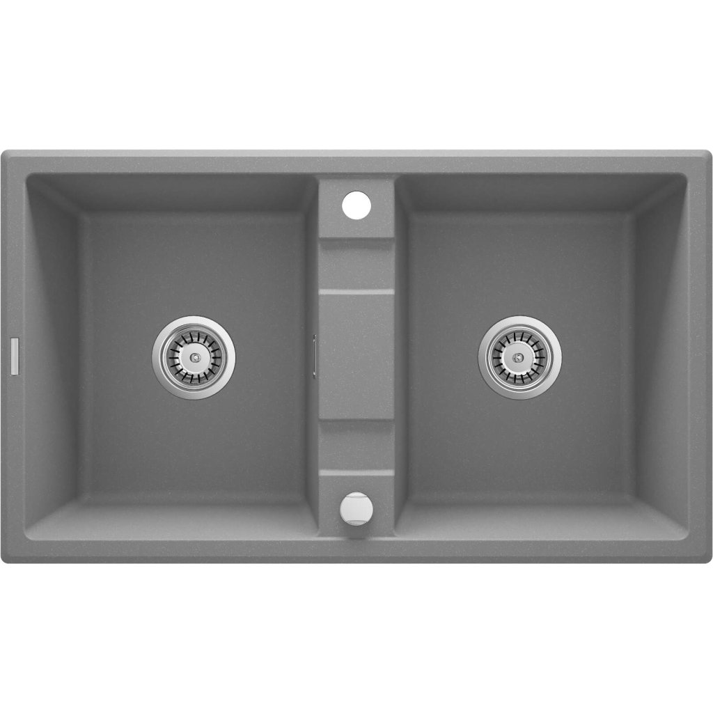Deante Eridan, chiuvetă blat granit 860x500x220 mm B/O, 3,5" + sifon cu economie de spațiu, 2 camere, gri, ZQE_S203