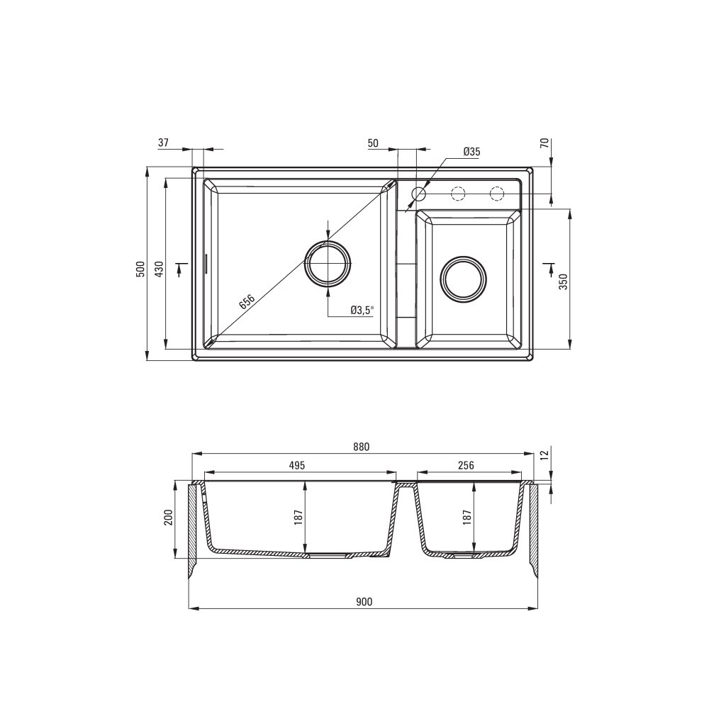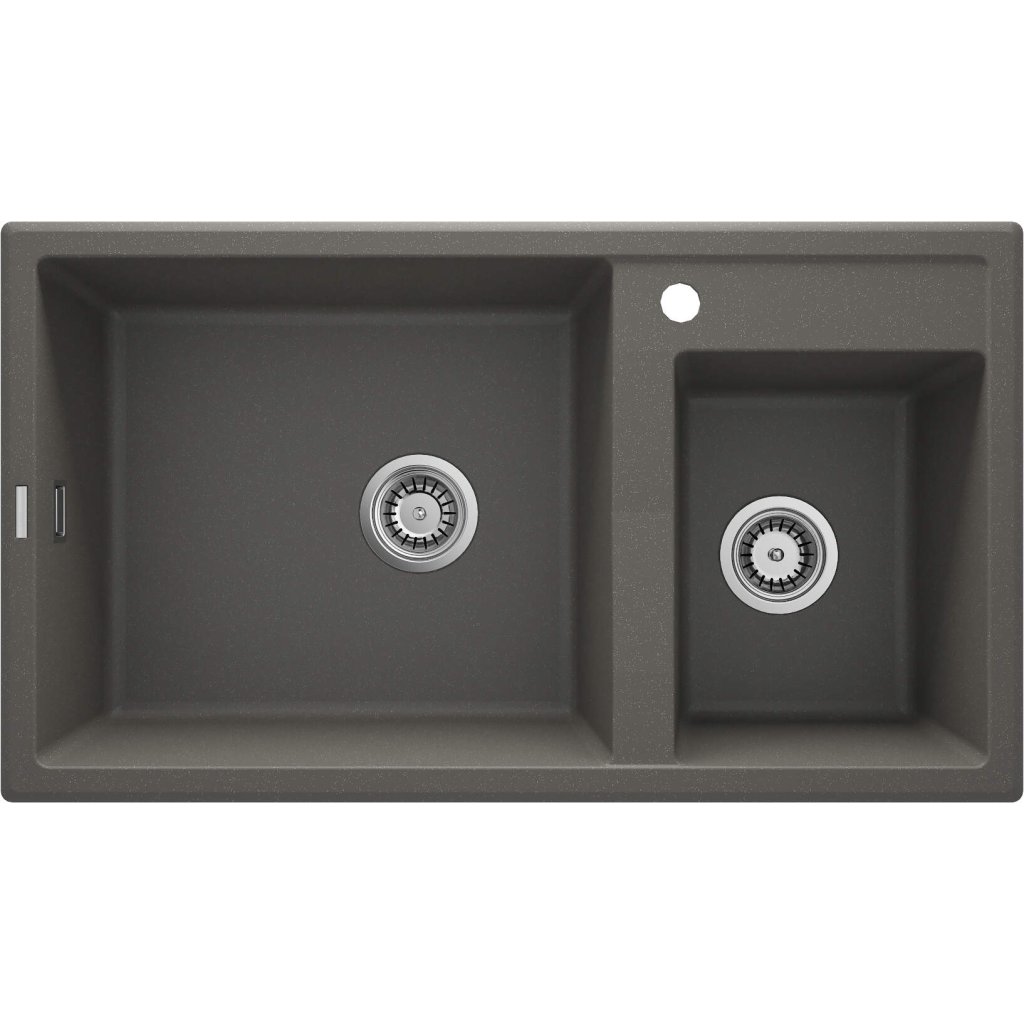 Deante Eridan, chiuveta blat granit 880x500x200 mm, 3,5" + sifon de economisire a spațiului, cu 2 camere, antracit metalic, ZQE_T20B