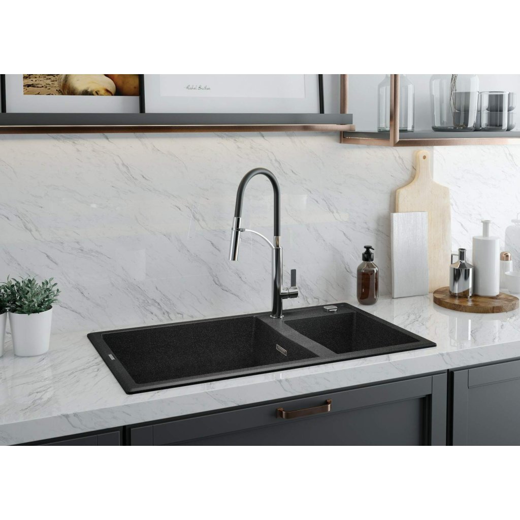 Chiuveta din granit ERIDAN de la Deante cu doua cada este un element extrem de functional si interesant de mobilare a unui apartament sau a unei case. Cu el, fiecare bucătărie va arăta pur și simplu perfect. Modelul este rezistent la diverși factori. Această listă include, printre altele, temperaturi ridicate, șoc termic, zgârieturi sau impacturi - în conformitate cu standardul european PN-EN 13310. De asemenea, instalarea nu este dificilă. Forma clasică fără colțuri inutile înseamnă că puteți curăța și această chiuvetă foarte rapid. Acest lucru va face mai ușor să-l păstrați perfect curat și vă va oferi mai mult timp pentru dvs. Setul include și un sifon Space Saver, care vă va oferi mai mult spațiu în dulap (sifon care economisește spațiu).