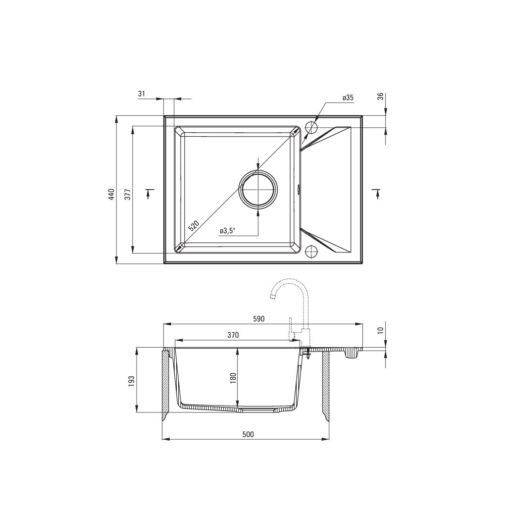- Tip: chiuveta blat granit + sifon cu economie de spatiu