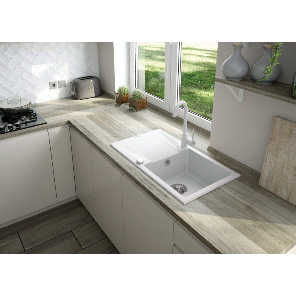 Deante Evora, chiuveta blat granit 780x440x193 mm, 3,5" + sifon de economisire a spațiului, 1 cameră, alb, ZQJ_A113