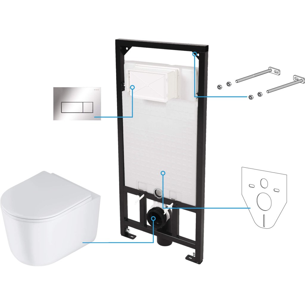 Setul de toaletă ascuns Jasmin este o combinație de eleganță și funcționalitate. Cadrul este stabil si durabil, datorita cadrului de otel, care asigura fiabilitate pentru multi ani de utilizare. Butonul de control cromat adaugă eleganță și se armonizează cu tendințele moderne în designul băii. Vasul fără margine este o revoluție în menținerea igienei – lipsa colțurilor facilitează foarte mult curățarea și elimină problema acumulării de murdărie. În plus, sistemul inovator cu hidromasaj asigură o clătire eficientă a interiorului vasului, permițându-vă să mențineți curățenia impecabilă. Scaunul cu inchidere soft inseamna confort si siguranta in utilizare. Întregul arată extrem de estetic și se potrivește perfect cu diferite stiluri de interioare de baie.